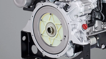 For cooling charge air and engine coolant, a dual-circuit combined cooler from the MMC series by KTR is used which was dimensioned in cooperation with Hatz. In addition a compact oil cooler is part of the scope of delivery which is mounted on the engine side cooling the engine oil with the engine coolant. If the engine is used as a primary unit of a hydrostatic drive, a KTR flange coupling on the flywheel side is supplied by the manufacturer or recommended to be mounted, respectively. In this case a BoWex® flange coupling FLE-PA is concerned ensuring the connection between flywheel and hydraulic pump. The coupling serves for compensating for the misalignment in the drive train. Subject to its high torsion spring stiffness it furthermore makes sure that there is no generation of any critical resonances, thus considerably adding to protecting the adjacent components as well as the overall power pack.