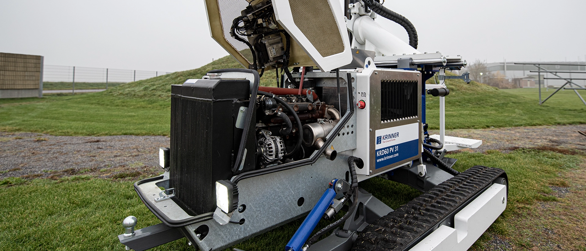 Krinner’s latest KRD 60 PV ground screwdriver, which achieves a maximum torque of 5,500 Nm when installed in a compact space, meets all these requirements. The primary drive for the traction and working hydraulics is, in this case, a Hatz 4H50TIC OPU 55 kW diesel engine with 2-litre displacement that forms a compact unit.